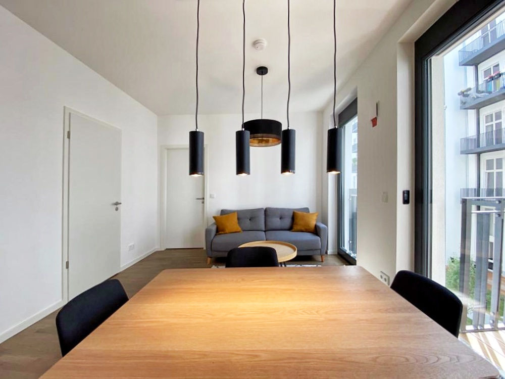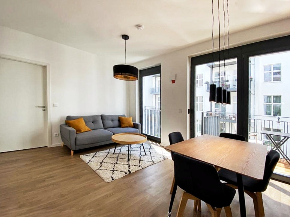 This stylish 2-room apartment is located in a high-quality, modern residential building in the central Mitte district, close to the green surroundings of the historic park along the Spree. The apartment offers a well-designed layout with one separate bedroom, an open-plan living, dining, and kitchen area, a modern bathroom, and a private balcony. It is ideally suited for singles or couples seeking contemporary city living.
